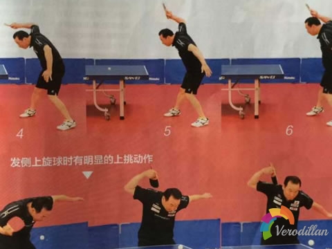 本組圖主要先容的是反手發球手藝,側視圖是側旋球,正視圖是側上旋球,這點從板形的轉變可以看出來。雖然旋轉上略有差異,但兩者在用力的技巧上都是借助身體的協挪用力來完成動作,從而把旋轉發到最強,這也是乒乓球所有技巧中最要害的一項。在演習這個發球的時刻,首先不要太過于計算旋轉和落點,注重力應多放在身體的協挪用力上,如圖,宮崎義仁的起手動作都是由身體動員向左側上方抬中央,以左側腰腹部為發力點,動員放松的左腿向上抬,手順勢向左上方引板并處于放松狀態,右腿單獨支持;發球時,他的左側腰腹先發動,向右側加速擺動,順勢下壓重心,等氣力所有輸出后,手腕加速摩擦完成擊球。建議球友在剛最先練時,先在臺下模擬徒手,要害是能夠體會出腰腹的氣力,而且使四肢基本處于放松狀態,配合身體乏力。稀奇需要注重的是,持拍手一定要位于左臂的腋下(右手持拍為例),這樣才氣引出更大的加力空間。