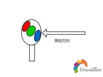 詳細來說,以下圖為例,想發(fā)出強下旋球,就要用球拍的紅色區(qū)域摩擦球,這樣的利益是對球體有一個很好的摩擦空間和距離,若是用藍色區(qū)域摩擦球,這個球就是不轉(zhuǎn)球,由于這個位置基本吃不住球。用綠色區(qū)域發(fā)出的旋轉(zhuǎn)介于紅色和藍色之間。