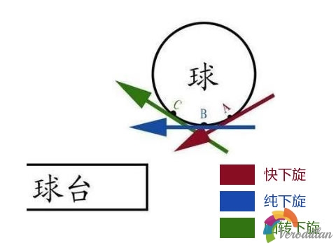 對于底部位置,觸球點差異,以同樣的氣力發(fā)球,會獲得差其余旋轉(zhuǎn)。以上圖為例,若是接觸A點,向下用力砍球,這個球就是一樣平常意義上的下旋球;若是接觸B點,也就是正底部,用力橫向切球,這個球就是死轉(zhuǎn)的下旋球;若是接觸C點,由后下往前上發(fā)力摩擦,這個球就是超級盤旋球。
