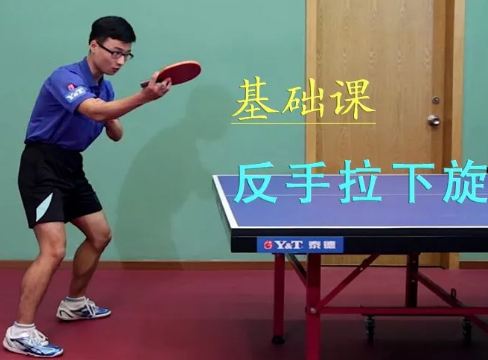 比賽中對(duì)于出臺(tái)下旋球,如果球在反手位我們可以采取側(cè)身用正手進(jìn)攻,但這樣容易造成正手位的大空擋,所以我們可以采取另一種方式:反手拉下旋球。