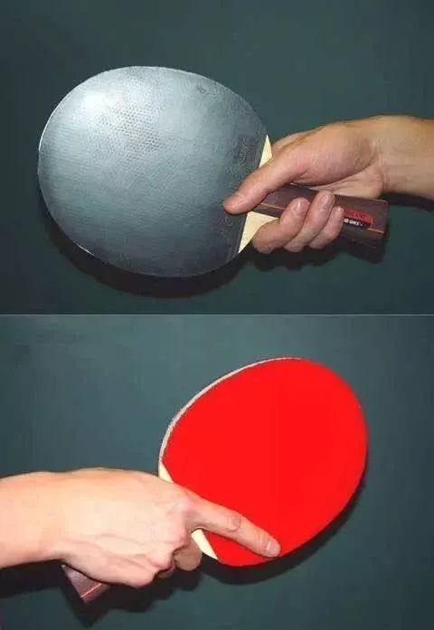 為什么呢?這樣握拍能確保在擊球時可以同時調節(jié)板形,控制拍頭,這樣才能靈活地去擊打臺內短球和長的下旋球,特別是反手拉球的手腕運用都要靠手指的配合,也就是說手指頭要捏住拍子才能去和手腕一起去調節(jié)球。食指若太靠膠皮的中間,就會影響到板形的調節(jié)和正反手的轉換。