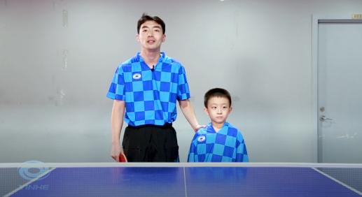 褚教練詳細講解:站在球臺正手位,手端平,球放在手掌中心保持靜止……