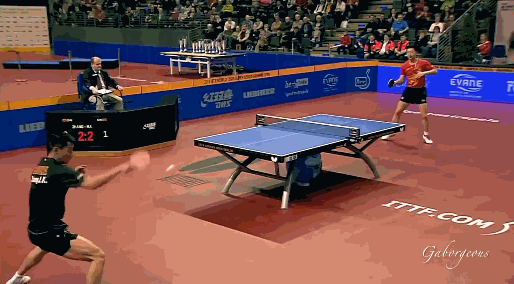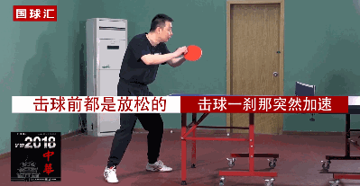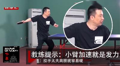 舉個(gè)例子,看看張繼科的發(fā)力慢動作,加速收小臂非常明顯。