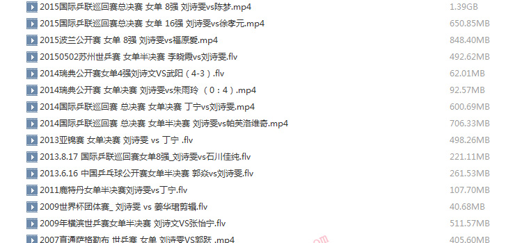 劉詩(shī)雯各類(lèi)乒乓球比賽高清視頻合集擰拉技術(shù)百度網(wǎng)盤(pán)下載