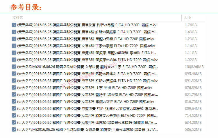2016韓國乒乓球公開賽乒乓球視頻合集 百度網(wǎng)盤下載