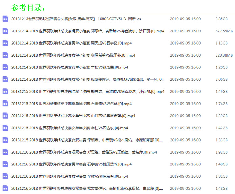 《2018羽毛球世界羽聯(lián)年終總決賽》高清視頻合集百度網盤下載