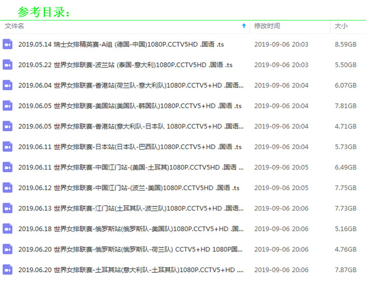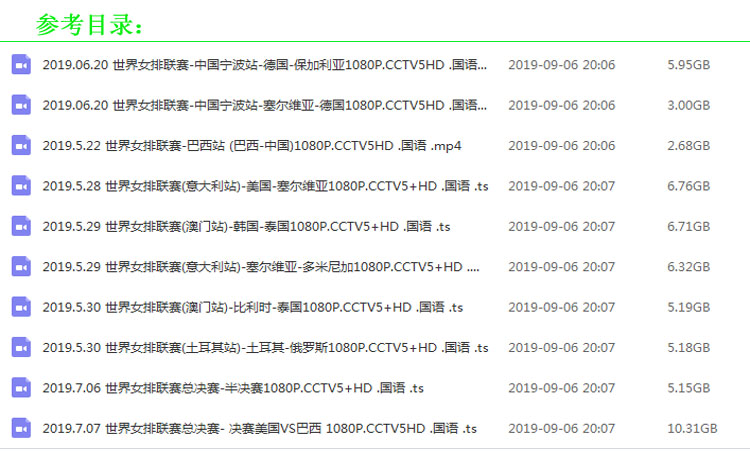 《2019世界女排聯(lián)賽》高清視頻合集