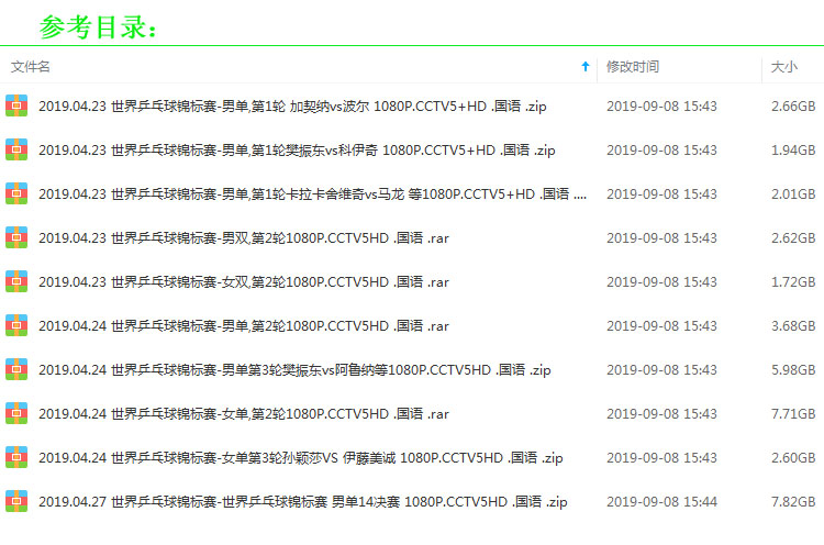 《2019年乒乓球世界乒乓球錦標(biāo)賽》高清視頻合集