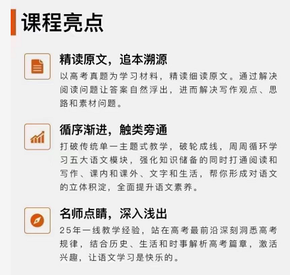 課程點(diǎn)評(píng):本課程帶你讀出高分系列課,50小時(shí)全面提升語(yǔ)文綜合能力,4個(gè)月名師伴讀培養(yǎng)精讀習(xí)慣,30分鐘逐個(gè)突破高考真題。提倡用理科的思維學(xué)習(xí)語(yǔ)文,語(yǔ)文題背后有邏輯,全面提升語(yǔ)文綜合能力逐個(gè)突破高考真題。