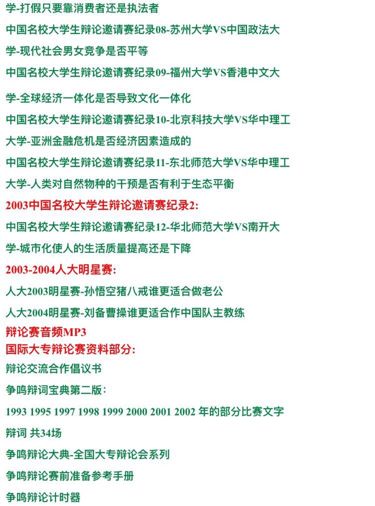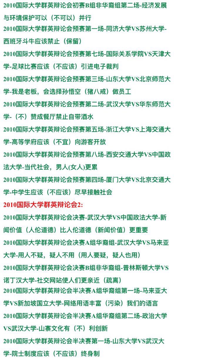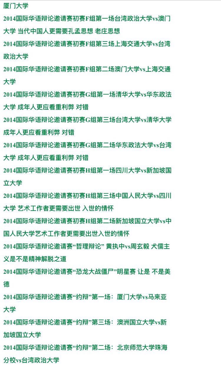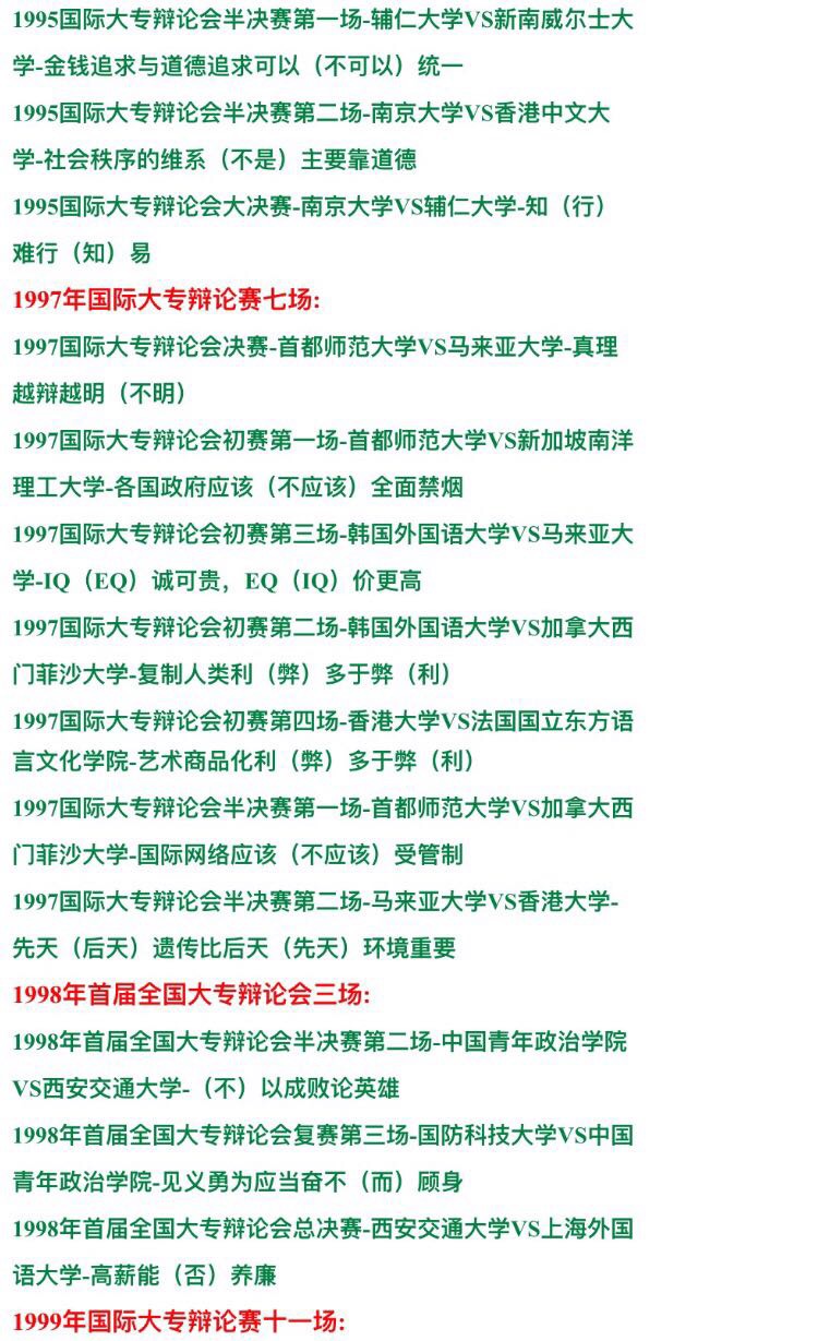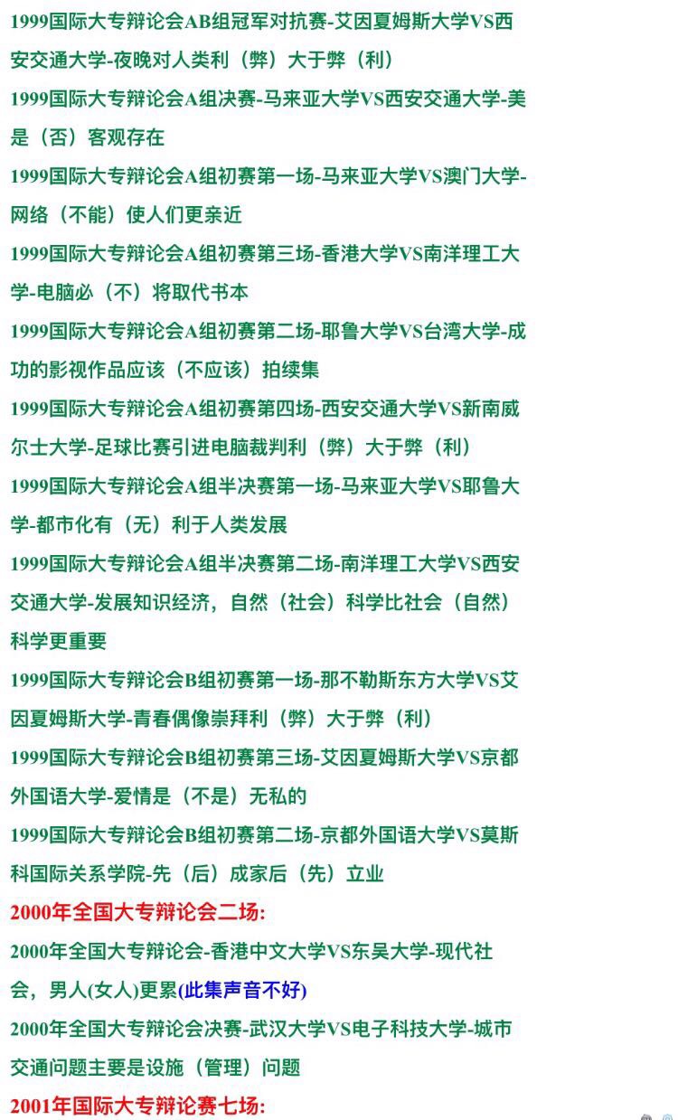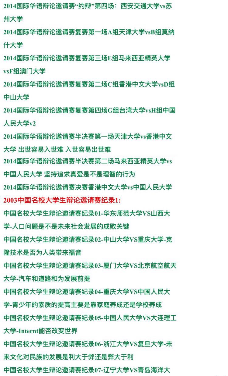 國際大專辯論賽辯論會 大學(xué)群英1993-2014年視頻錄像全集