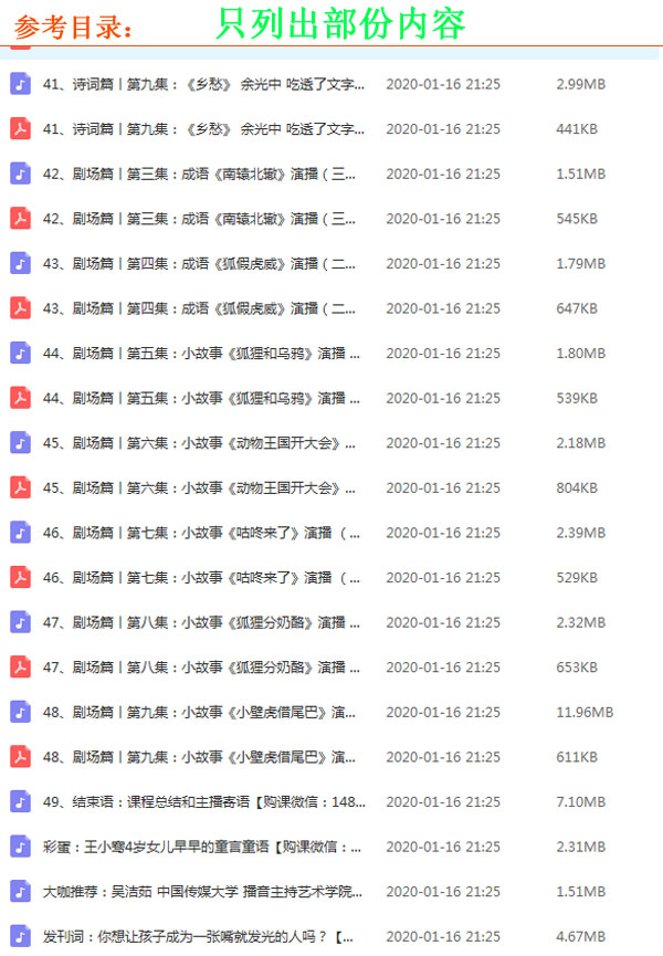 著名主持人的一流口才課 世界上最美的語言,來自于真摯;表達中最好的素材,來自于閱讀。 經(jīng)典課文、成語故事、古詩詞等文化經(jīng)典就是最標準的口語表達素材。 跟著王老師一起馳騁在自己的思維世界里,編織屬于自己的情節(jié),將想象和現(xiàn)實融為一體,將所學知識轉(zhuǎn)化為口語表達的素材,讓小朋友輕松自在地把奇思妙想、真情實感暢快地表達出來,感染你的情緒,直達你的心。 認真聽完本套課程,那個吐字清晰、語句連貫、聲調(diào)的高低變化和情感都非常到位的孩子一定會在人群中發(fā)光!