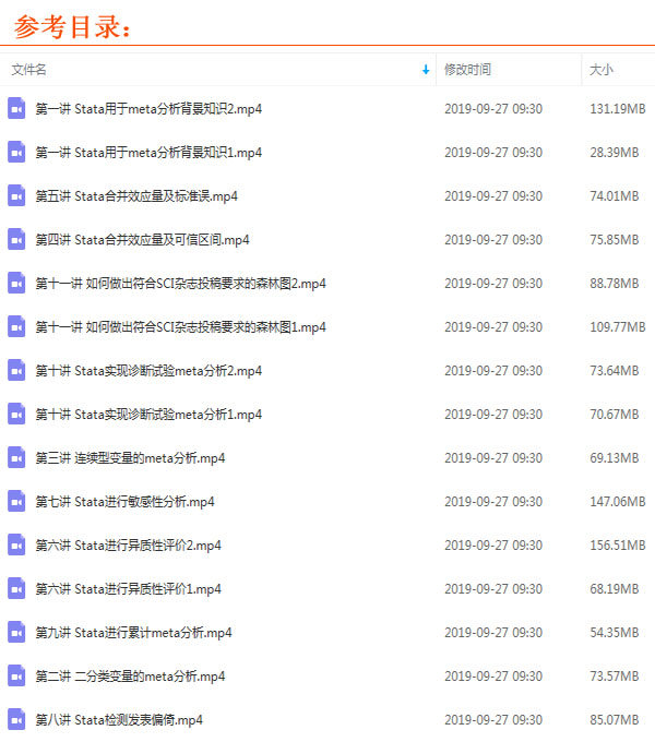 《STATA 軟件在Meta分析中的應用》視頻全集百度網盤百度云下載