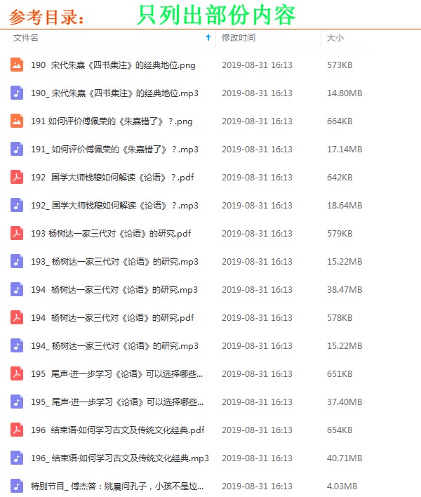 《傅杰的復(fù)旦論語(yǔ)課》音頻節(jié)目由復(fù)旦大學(xué)中文系教授,提煉數(shù)百種《論語(yǔ)》研究著作的精華,糅合了2000多年中國(guó)傳統(tǒng)文化進(jìn)行講解的,包含15大知識(shí)模塊,150集正式課程,還有50集互動(dòng)答疑。該節(jié)目不灌心靈雞湯,不傳道德訓(xùn)誡,更不故弄玄虛、標(biāo)新立異。讓你了解孔子與《論語(yǔ)》影響之下的中國(guó)古代政治、思想、文學(xué)發(fā)展史,對(duì)《論語(yǔ)》及儒家核心思想的系統(tǒng)性知識(shí)了解。給你儒家思想對(duì)個(gè)人修身、為政、教子、處世、經(jīng)商的啟發(fā),讓你從《論語(yǔ)》的文字里,聽(tīng)出一部中國(guó)文化史。詳細(xì)的內(nèi)容可以看看細(xì)節(jié)安排~