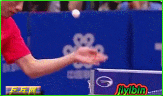 2、反面(直拍反打的那面),發(fā)急下旋,然后準(zhǔn)備直拍橫拉(高吊)。