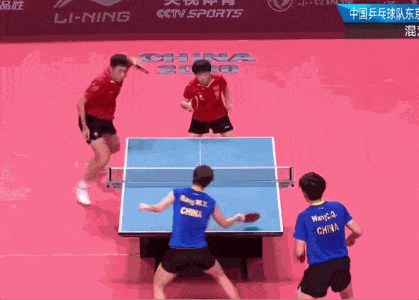 是的你沒看錯,這是一場“男雙”比賽,許昕撲完正手努力還原的過程中,順勢用反手狠狠切了一板側(cè)下旋,逼的王楚欽沒招了,只能將球輕拖回去,可惜......