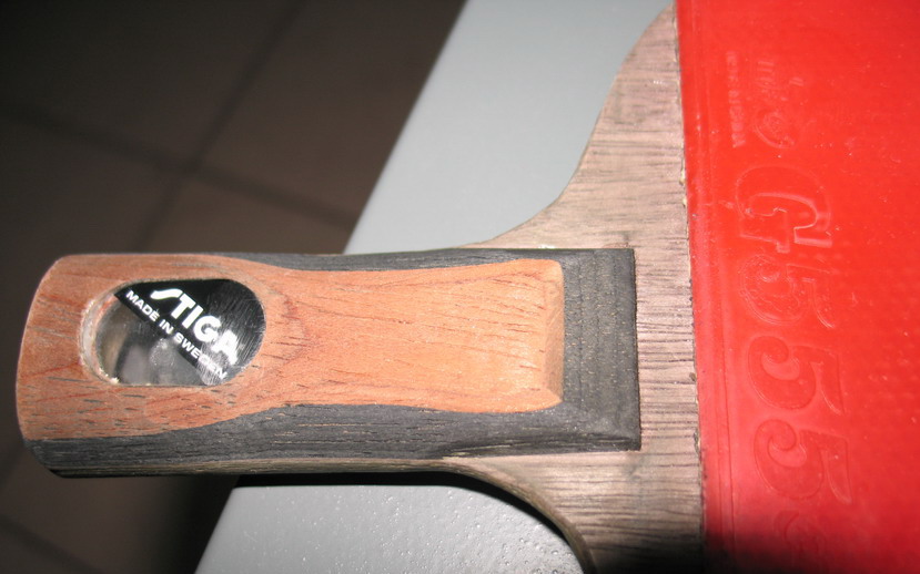2.由于生理局限,反面拍形不能象橫板一樣任意打開,所以,打磨拍柄最重要的部位是在拍柄后面,如何讓拍柄更貼近虎口?唯有將拍柄背面靠虎口位磨薄: