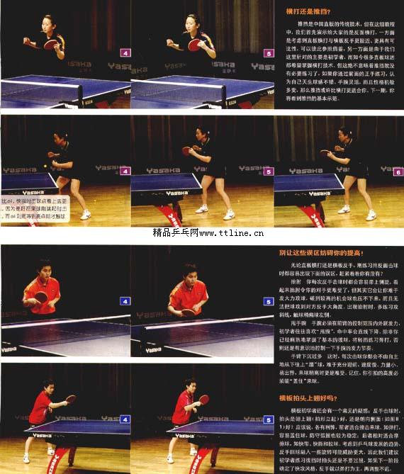 推擋是中國直板的傳統(tǒng)技術,但在這組教程中,我們首先演示給大家的是反面橫打,一方面是考慮到直板橫打與橫板反手更接近、更具有叫比性,可以彼此參照借鑒,另一方面是由于我們這里針對的主要是初學者,而如今很多直板球迷都希望掌握橫打技術但這絕不意味著推擋就沒有必要練習了,如果你通過前面的正手練習,認為自己天生球感不錯、手腕靈活,而且性格機敏多變,那么推擋或許比橫打更適合你,下一期,你將看到推擋的基本示范。