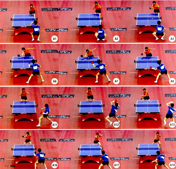 李曉霞的進(jìn)攻套路十分清晰,以下組圖中是一套“傳統(tǒng)”的進(jìn)攻套路,李曉霞的每一板球都是一個(gè)“定式”,這個(gè)套路是運(yùn)動(dòng)員在平時(shí)訓(xùn)練中的一個(gè)基本內(nèi)容。www.qikan.com.cnQXymla0SgIgAYuSN