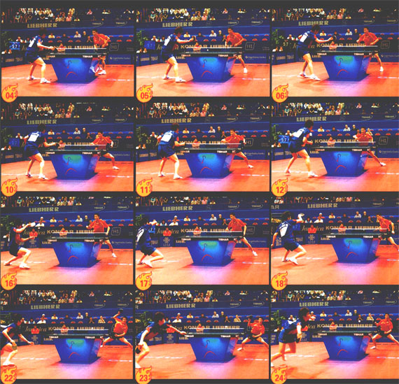 連續(xù)圖片1—24是王勵(lì)勤使用反手?jǐn)Q拉后,進(jìn)攻柳承敏正手位的一組場(chǎng)景。www.qikan.com.cnmmLV8kaW2X4p5aTA