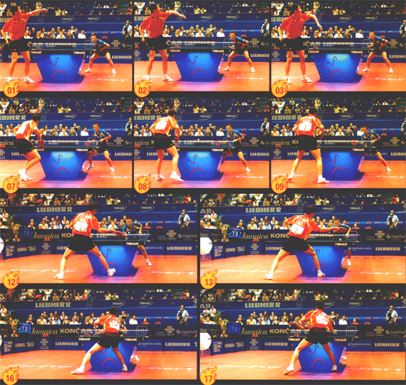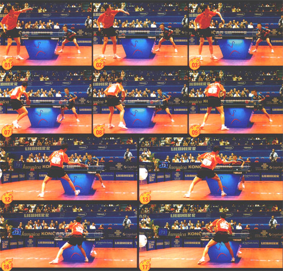 另外,從圖13—15中我們可以看到王勵(lì)勤擊球前落地的右腳再次跟進(jìn)。這樣的步法有利于維持身體平衡,為大力擊球提供保證。在這組技術(shù)圖中,我們可以學(xué)到正手位短球的挑打姿勢(shì)和下半身移動(dòng)的方法。www.qikan.com.cnmmLV8kaW2X4p5aTA