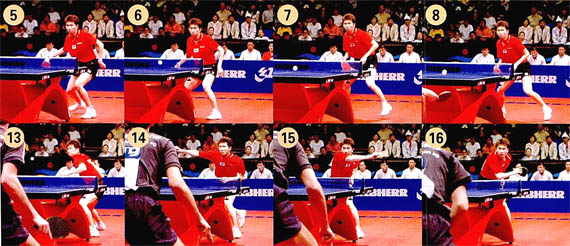 普通選手發(fā)球搶攻時(shí),往往只偏重于擊球速度。但高手們的發(fā)球搶攻除了速度快之外,還有巧妙的線路變化。比如打斜線球會(huì)有意識(shí)地打?qū)θf的大角。即使對(duì)方把球回過來,線路也基本上在自己的掌控范圍,這對(duì)第五板以后的連續(xù)進(jìn)攻非常有利。www.qikan.com.cnJfIiIyoA6GzeuLZh