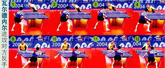 如下圖瓦爾德內(nèi)爾,先發(fā)對(duì)方正手位短球,將對(duì)方調(diào)動(dòng)到近臺(tái),然后用反手攻對(duì)方反手位空檔。另外,發(fā)對(duì)方反手位短球,當(dāng)對(duì)方側(cè)身接發(fā)球時(shí),正手位就出現(xiàn)空檔,此時(shí)第三板攻對(duì)方正手也非常有效。www.qikan.com.cnJfIiIyoA6GzeuLZh