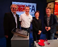 (德國米技董事長季殘月女士與德國男子乒乓球隊主教練羅帥接受IFA展官方電視媒體采訪)