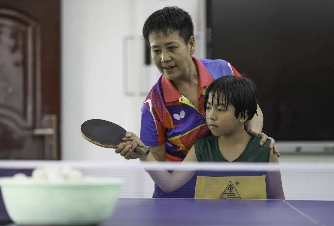 “好,手臂擺動要自然,腳步跟上。”球臺前,關艷細致地觀察著每個隊員的動作,并及時引導。兩個小時的訓練中,孩子們時不時去喝水,但關艷和李華先卻滴水未進,因為他們怕上廁所影響孩子的訓練節(jié)奏。