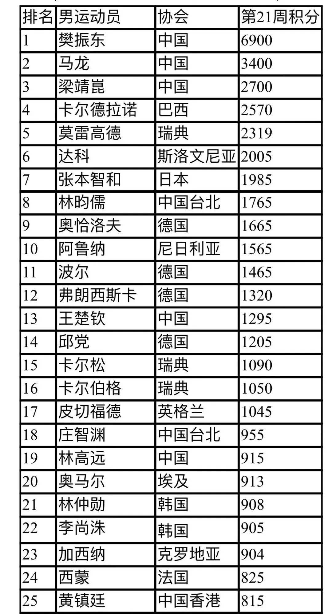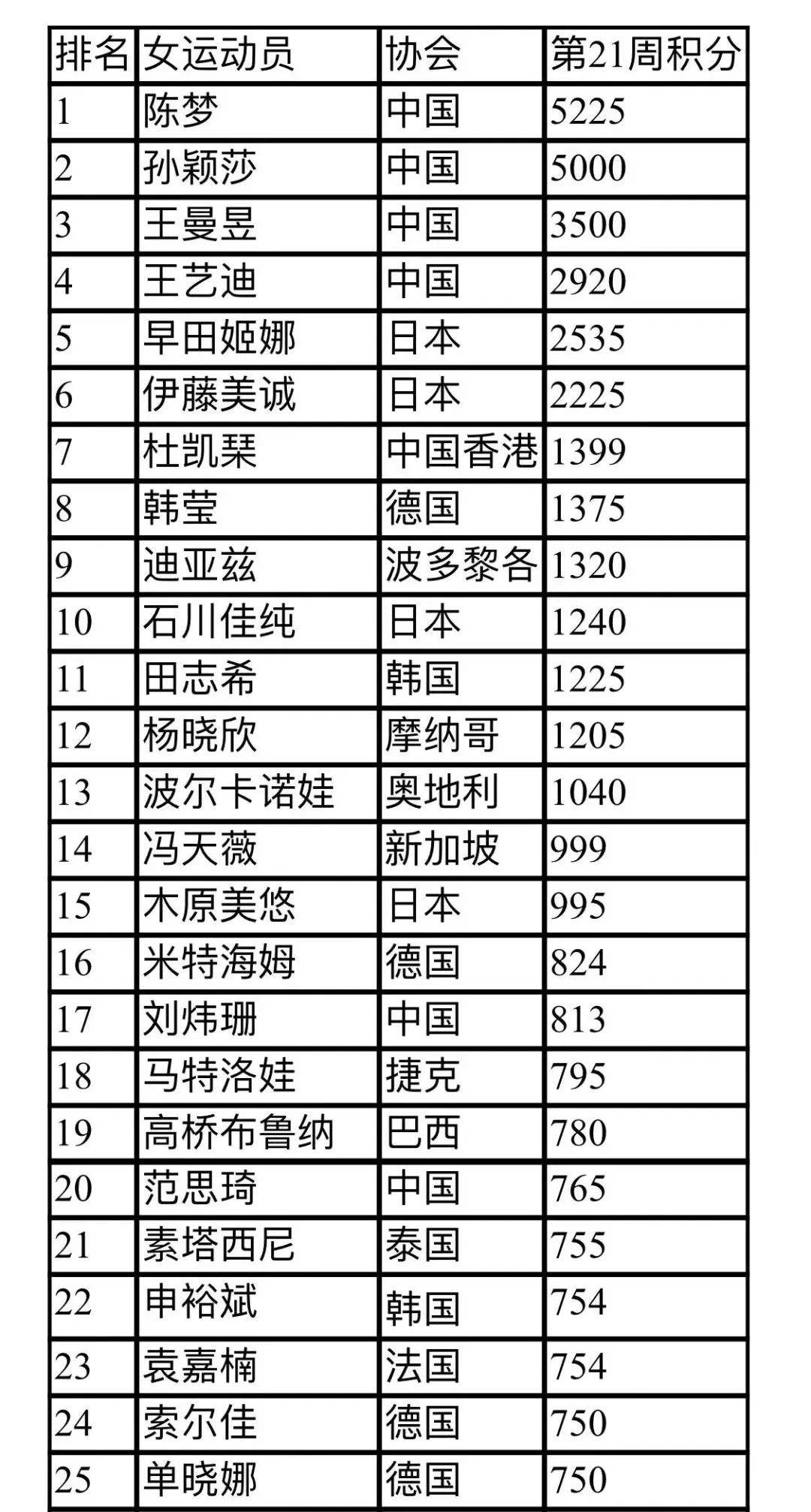 5月30日,國(guó)際乒聯(lián)公布了2022年第22周世界排名。樊振東、馬龍、梁靖崑穩(wěn)居男單三甲。陳夢(mèng)、孫穎莎、王曼昱、王藝迪占據(jù)女單前四。參加了非洲杯的部分球員排名積分有不同程度漲幅,其中首奪女單冠軍的埃及15歲小將哈娜,上升十個(gè)位次,來到第33名。