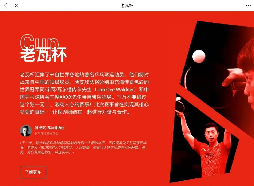 沒錯,就是老瓦杯!老瓦那個老瓦!早在21年7月就提出了賽事構(gòu)想,一開始叫“劉國梁老瓦杯”,一年一辦,一年叫“劉國梁杯”,一年叫“老瓦杯”,采用對抗賽賽制,定位半娛樂性質(zhì)比賽。