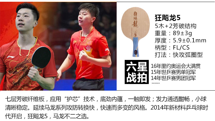 新老龍五均為內(nèi)置纖維結(jié)構(gòu),老版板面稍大,新版板面較小,這種改變帶來的直接影響就是新版的剛性更強(qiáng),容錯(cuò)下降,而老版龍五的板面較大,含球更好,手感也比較清晰。