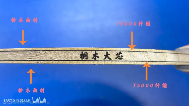材質(zhì) 3 plies of wood (Kiri center and Cypress/Hinoki outer plies), 2 plies of Tamca 5000 Carbon