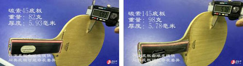 可以明顯地感覺出斯蒂卡碳素145乒乓球底板的出球更快,中近臺擊打更快,但是略微有一些震手;斯蒂卡碳素45呢則感覺可以抓住球,但是速度不是很快,兩個底板一起試打的體會非常明顯。起下旋感覺145帶來的自信更充足,速度快,弧線低,適合前沖弧圈球。