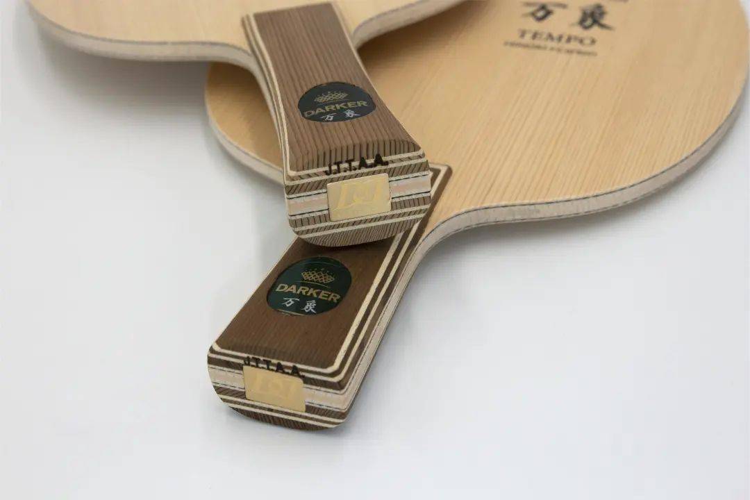 手柄標(biāo)牌沿用了經(jīng)典的,代表“萬象”純正血統(tǒng)的綠色標(biāo)牌。區(qū)別于傳統(tǒng)的達(dá)克底板英文DARKER尾標(biāo),TEMPO靈動(dòng)拍柄末端內(nèi)嵌“金色雙D”的達(dá)克新LOGO鋁牌,一如已上市的SYNERGY系列,代表性能更為顯著的球板。達(dá)克萬象系列不僅具有著出色的實(shí)戰(zhàn)性能,更因其考究的用料、精細(xì)的做工,被廣大乒乓球愛好者視為收藏和禮贈(zèng)佳品。