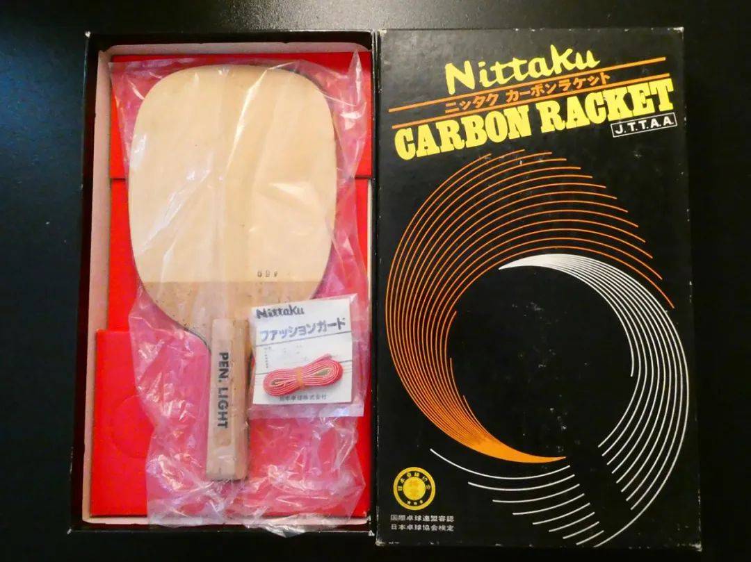 一直以來不論中外的球板收藏家都認(rèn)為,世界上第一種量產(chǎn)的碳素乒乓球板是產(chǎn)于1978年的初代STIGA super carbon,我也深信不疑。但在2010年我收到了這支球板后,這種說法恐怕從此就要改寫。這再一次證明以實(shí)物印證歷史才是王道。下面為大家介紹全世界第一款大量生產(chǎn)的碳素球板,Nittaku Carbon Racket。