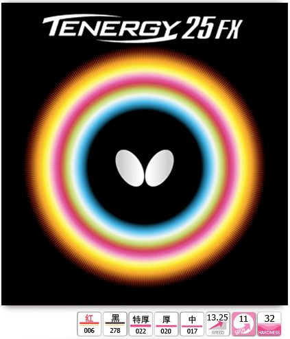 Tenergy 25的撞擊優(yōu)勢與Tenergy 64所表現(xiàn)出的速度優(yōu)勢有所不同,前者出彩的地方在于穩(wěn)定和精準(zhǔn),在防弧圈、快攻時有似正膠般快速下沉的特性,利于借力破轉(zhuǎn)、借力打力,大膽發(fā)力反擊經(jīng)常能取得不錯的效果,在近臺上旋相持之中具有比較大的優(yōu)勢。