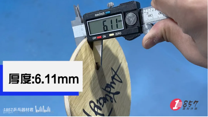 厚度:評(píng)測(cè)中使用的乒乓球底板厚度是6.11mm。圖片