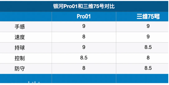 在這個(gè)價(jià)格段,紅雙喜506X和銀河Pro01也是非常人氣的底板。相比來看,紅雙喜506X的1速很快,但是它的二跳速度一般,弧線偏于低平,如果不注意擊球角度的話很容易失誤。所以506X更擅長打拍拍樂的球,而75號,弧圈球摩擦則更有優(yōu)勢,而銀河PRO01的速度感一般,則只是穩(wěn)定,速度不快。
