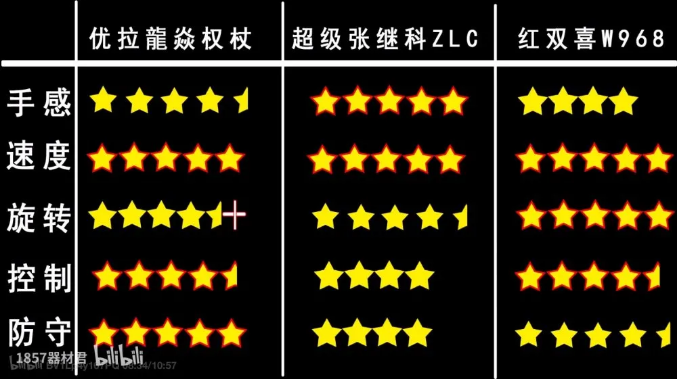 優(yōu)拉龍焱權(quán)杖高端乒乓球拍對(duì)比紅雙喜W968試打評(píng)測物理評(píng)測