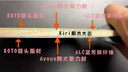5層木板+2芳基碳素-從外到內(nèi)分為兩層面材、兩層藍(lán)芳碳、兩層力材和中間的大芯的5+2經(jīng)典構(gòu)造
