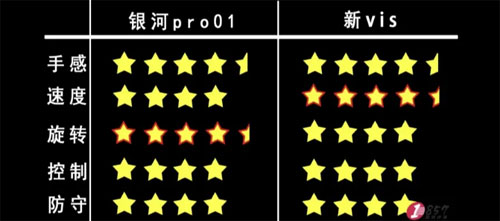 幾乎一致,沒有什么太大的變化,新vis在控制的環(huán)節(jié),我們說過,它更厚實(shí)一點(diǎn),所以防守中變換線路的借力防守更好一點(diǎn),但是銀河專業(yè)1號乒乓球底板可以穩(wěn)定的持球,形變更好,所以吸收力量略好于vis