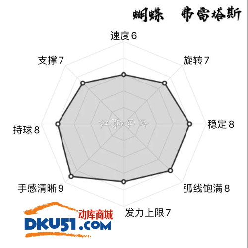 蝴蝶弗雷塔斯ALC乒乓球底板的弧圈快攻比例為弧7快3(弧圈快攻此消彼長總和為10),把它推薦給: