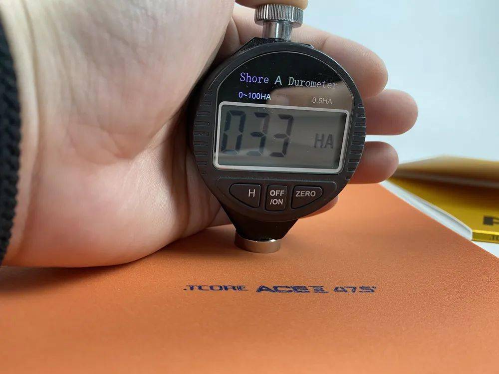 細(xì)看膠皮結(jié)構(gòu),Master X的面膠不厚,倒是齒粒有些偏大且偏密,膠皮的裸重為68.45g,官宣德系硬度為53度,實(shí)測整體硬度(邵氏A標(biāo)準(zhǔn))約為37.5度(差不多相當(dāng)于40度海綿狂飚3的整體硬度),整體符合正手膠皮的定位。