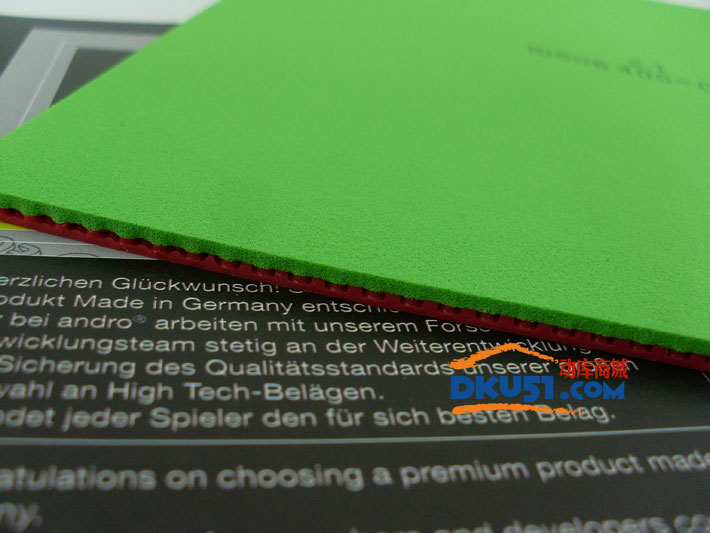 岸度RASANT GRIP套膠與RASANT一樣,海綿都是45度,定位也均勻為正反手皆宜。這也是新材料球乒乓球正是上路后,岸度品牌作出應(yīng)對的首批產(chǎn)品之一。相對于過去的兩款老產(chǎn)品,這張名為GRIP的套膠在保證了以往銳煞系列優(yōu)點的同時,進一步的強化了套膠在觸球時的手感,以彌補新材料球旋轉(zhuǎn)下降手感模糊的不足。