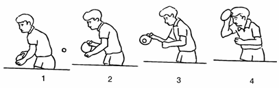 身體靠近球檯,右腳稍後。 上臂與身體若成35° ,與前臂約成120°。 當球從檯面彈起時,手臂由右側向左前上方迅速揮動,以前臂發(fā)力為主。 在球上升期擊球的中上部。 球擊出後,還原要快速、及時,放鬆前臂,準備下一板擊球。