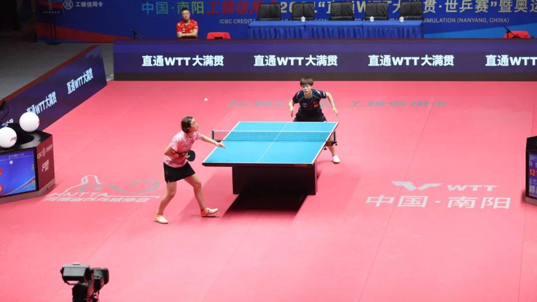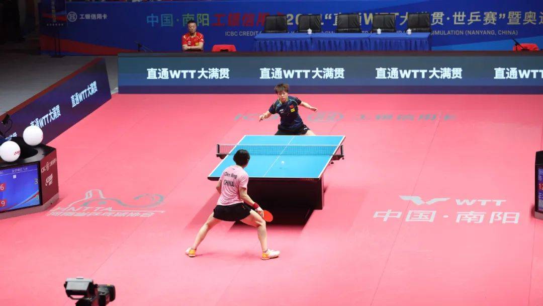 其實(shí)從第二板被對(duì)方用反手變直線開始,王藝迪就已經(jīng)發(fā)覺了局勢(shì)的被動(dòng),但她的正手回球只是為了求穩(wěn)而護(hù)了一條斜線,沒有強(qiáng)行逼著自己“以直對(duì)直”,以至于把球送到了陳夢(mèng)的手底下,而且暴露了自己的反手大空當(dāng)。雖然她在下一板的回防速度已經(jīng)很快了,但也很難再頂住對(duì)方足夠狠的直線殺板。
