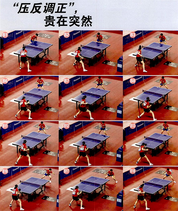 “壓反調(diào)正”的套路在運(yùn)用的過程中要以調(diào)動對方的身體重心為原則,通過落點(diǎn)變化將對方的身體重心壓到一方,然后再變線。變線要突然,要先觀察對方的動向,出其不意地偷襲對方的空檔。此外,變線后要做好反攻的準(zhǔn)備,同樣要盯住對方的空檔,爭取一招制敵。www.qikan.com.cnGQ8yD6jSAEgoccb7