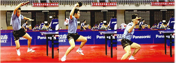 王建軍是目前中國(guó)隊(duì)采用日式直板打法的代表人物,他具有超強(qiáng)的進(jìn)攻能力。作為直板打法.進(jìn)攻是永恒不變的主題,而日式直板打法更突出了力量和速度的結(jié)合。王建軍的特點(diǎn)是:速度快、步法靈活,雖然他的絕對(duì)力量不如世界頂尖選手,但是他的側(cè)身大力爆沖具備了絕對(duì)的殺傷力。我們可以從組圖A中感受到王建軍流暢的發(fā)球搶攻技巧。