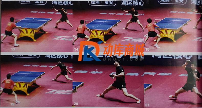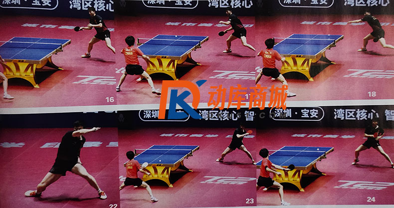 馬龍完成得分的側(cè)身殺板非常舒展,展現(xiàn)了正手厚實(shí)的基本功底。如圖16-19,馬龍壓實(shí)右腳重心,充分向后轉(zhuǎn)腰讓位,手臂協(xié)調(diào)配合,讓足擊球空間。圖19-20中,他頂住來球,腰帶手轉(zhuǎn)動(dòng)用力,手臂隨著自己選擇的擊球點(diǎn)高度進(jìn)行找球調(diào)整,做好擊球準(zhǔn)備。到圖20-21時(shí),馬龍快速收臂,拉出充足弧線,在這個(gè)過程中,他的腰部一直在充分轉(zhuǎn)動(dòng)用力,并且在圖21-22中通過向左完整的“擰轉(zhuǎn)”帶動(dòng)手臂拉出更為刁鉆的直線落點(diǎn),顯示出了他強(qiáng)烈的殺板意識(shí)以及強(qiáng)硬兇狠的一面。這板卷拉完全打穿了林高遠(yuǎn)的防線,堪稱一板教科書式的正手得分。